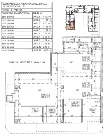Powierzchnia lokalu - to 148,84 m², gdzie wyodrębnione zostały pomieszczenia wg załączonego rzutu. Do dyspozycji jest projekt aranżacji wnętrz.