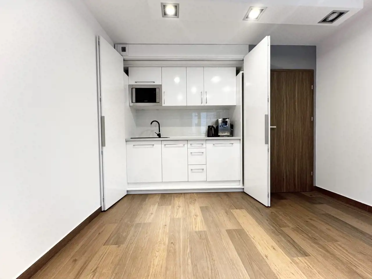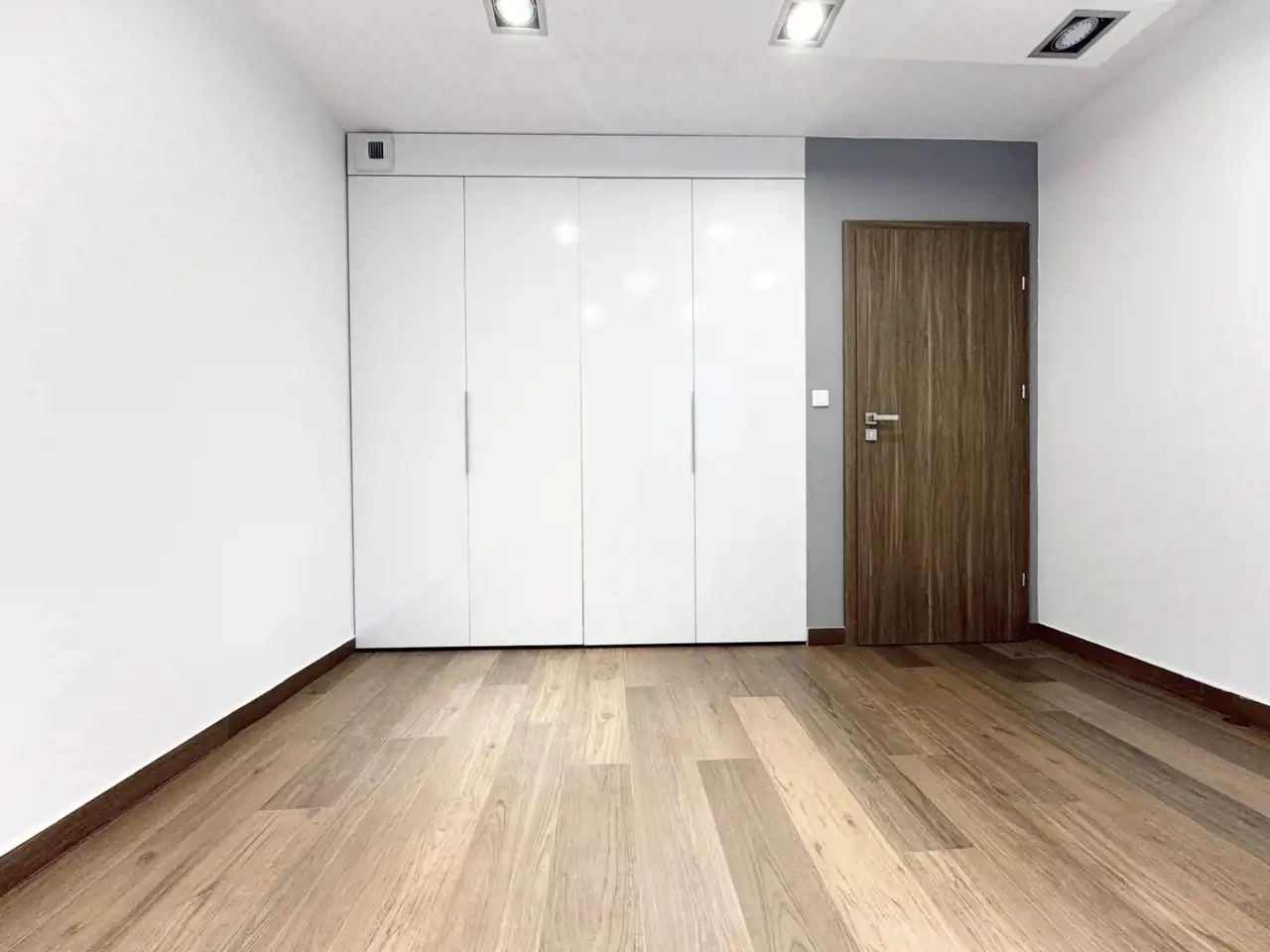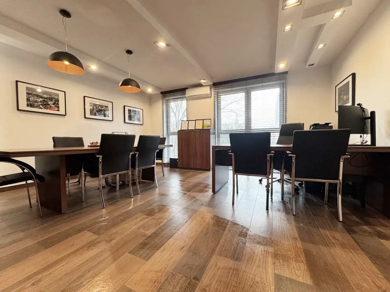 Biuro składa się z poczekalni wraz z recepcją/sekretariatem, łazienki z wydzielonym osobnym WC oraz dwóch gabinetów (26,41m2 i 12,14m2). W mniejszym gabinecie znajduje się ukryty w szafie typu Komandor, niewielki aneks kuchenny.