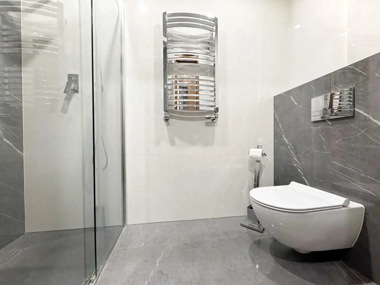 Podłogi – włoskie płytki; Ściany - gładź gipsowa, glazura;