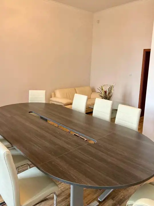 Układ pomieszczeń został zaprojektowany z myślą o komforcie pracy zespołu oraz przyjmowaniu klientów i kontrahentów. Przestronne sale konferencyjne, gabinety oraz strefy wspólne pozwalają na elastyczne zarządzanie przestrzenią w zależności od potrzeb firmy.