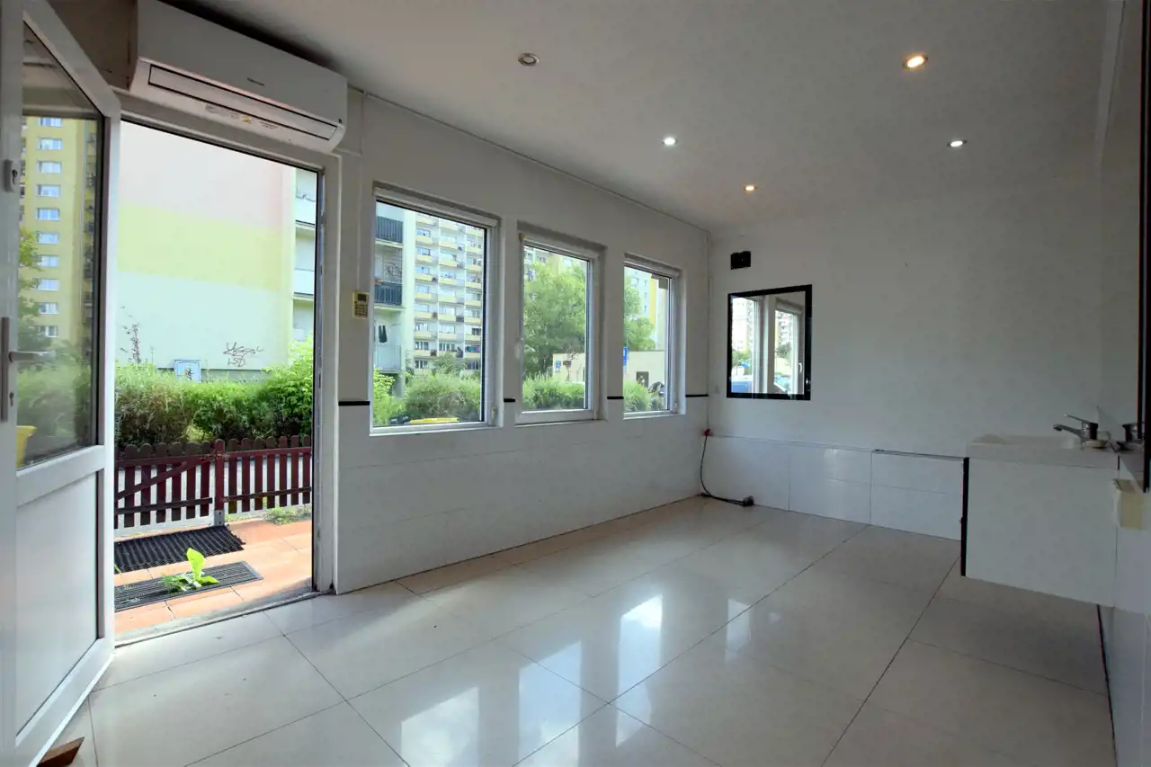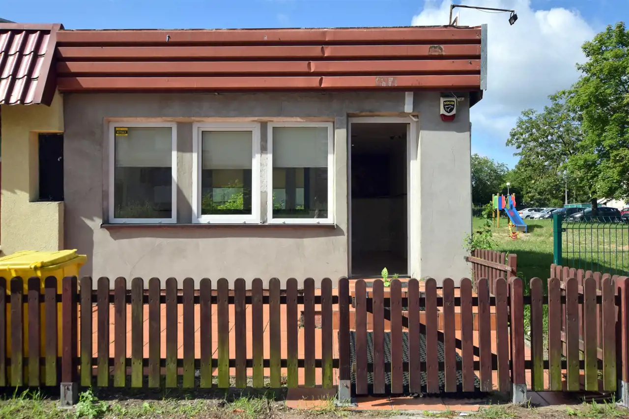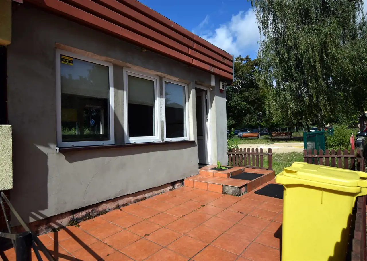 Pawilon parterowy, murowany, teren ogrodzony niskim płotkiem. Możliwość zagospodarowania ogródka przed wejściem. Wokół sporo bezpłatnych miejsc parkingowych.