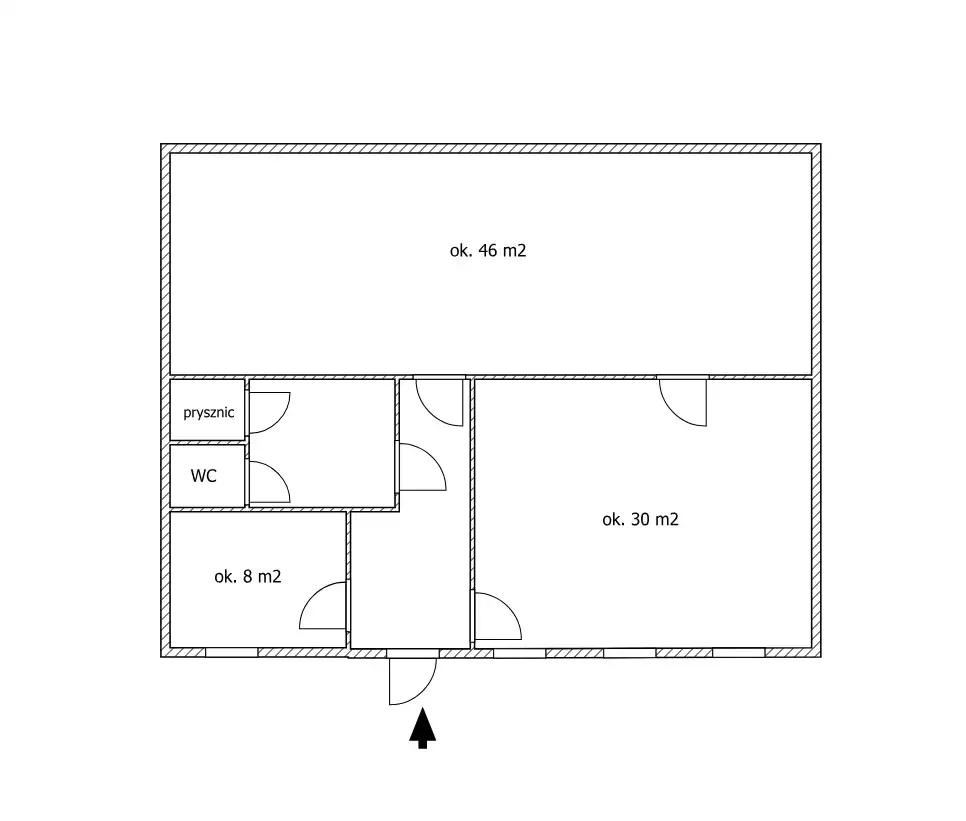 - ok. 46 m2, bez okien