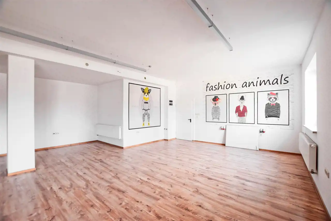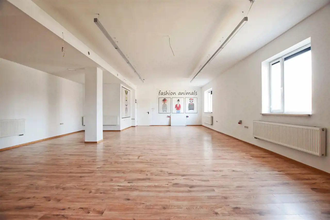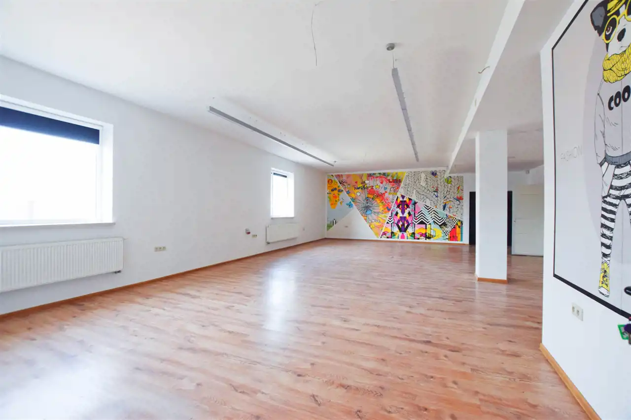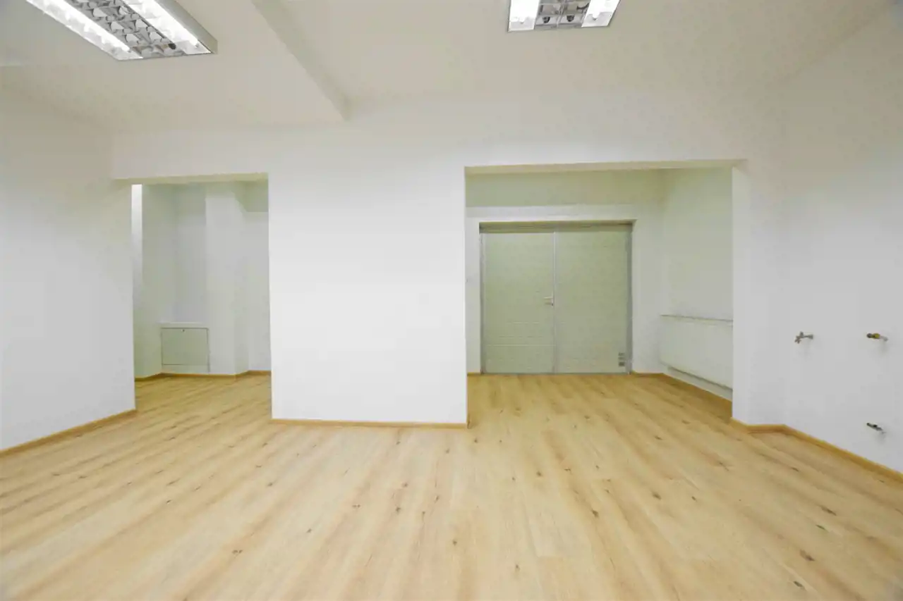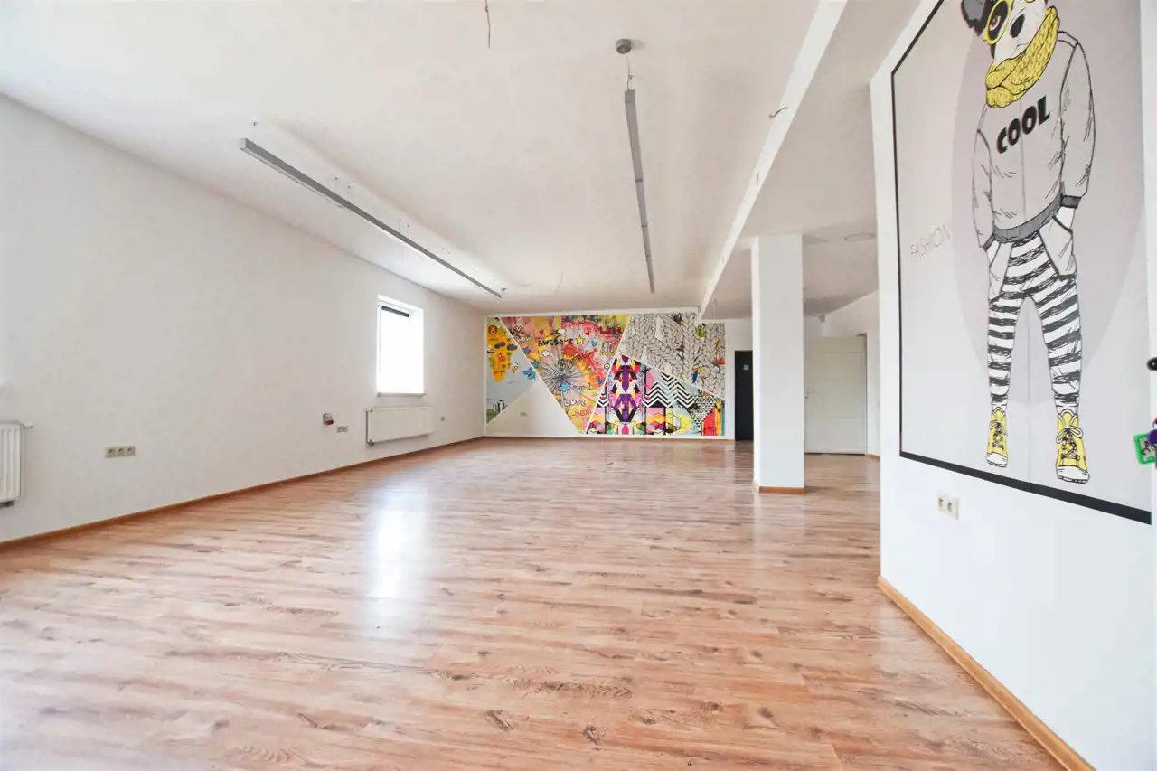 Nieruchomość składa się z dwóch pomieszczeń, większe o pow. 83,5 m2 posiada bezpośrednie wejście z zewnątrz do lokalu.