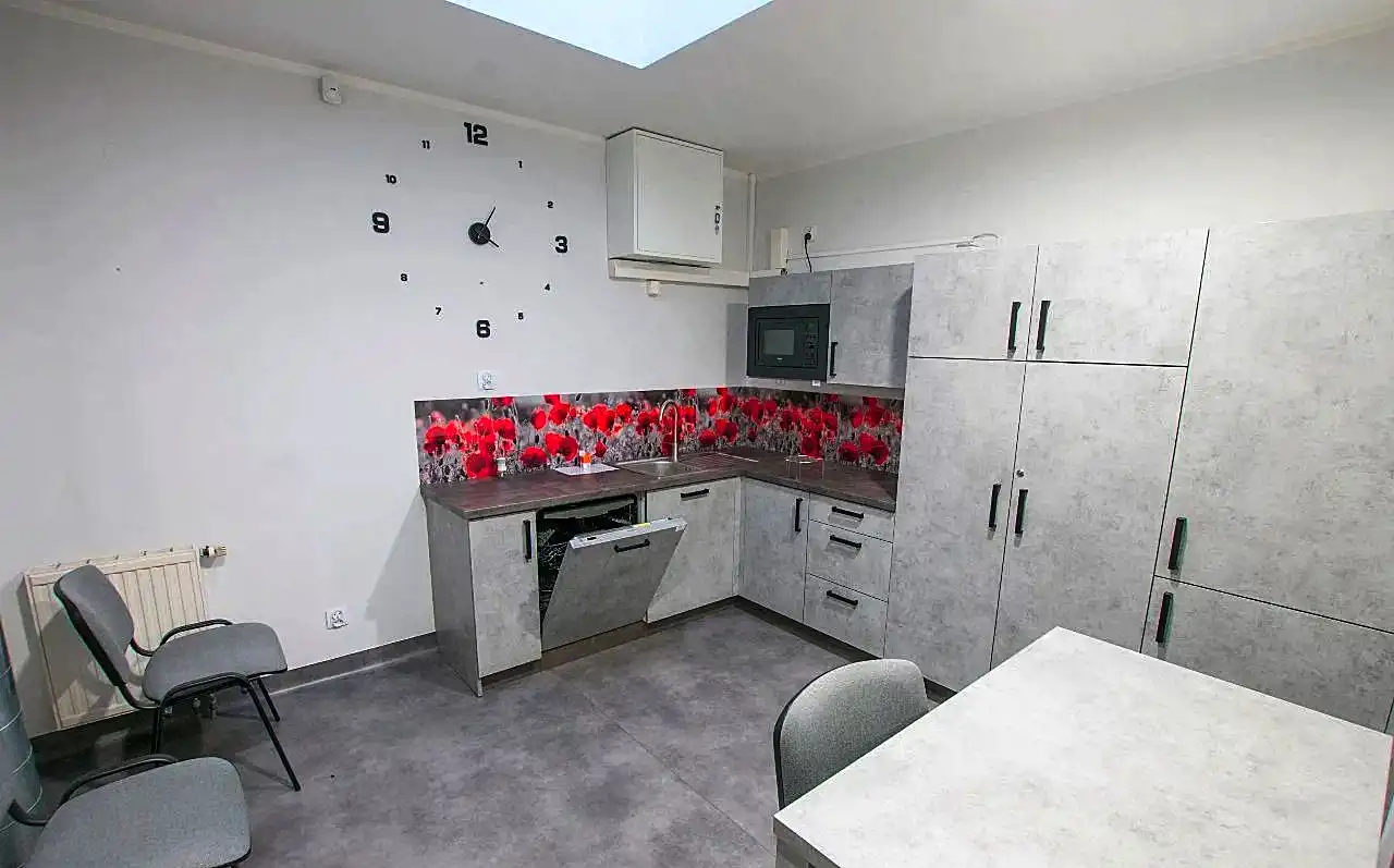 - Nowoczesne instalacje – ogrzewanie podłogowe i grzejnikowe (nowy piec gazowy WOLF 2023), klimatyzacja w biurach, wentylacja mechaniczna, oświetlenie LED, system alarmowy z monitoringiem