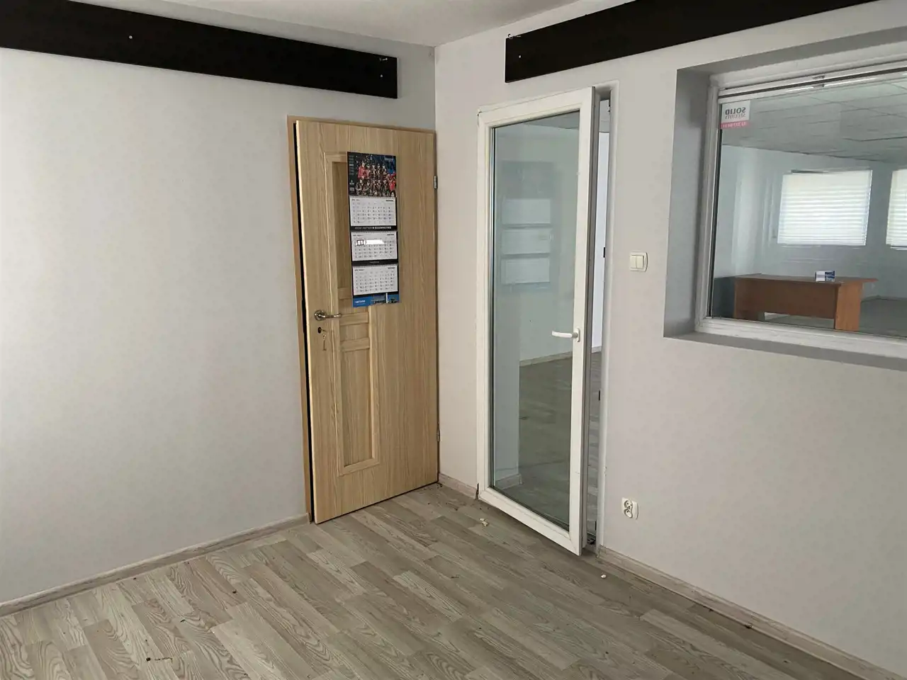 Część biurowa składa się z trzech mniejszych pomieszczeń biurowych oraz dużej powierzchni open space, pomieszczenia socjalnego i łazienki na pierwszym piętrze.