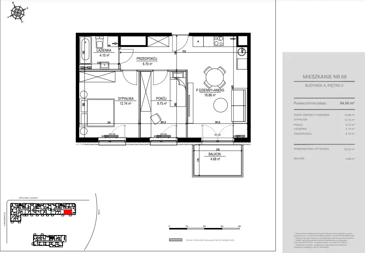 - Charakterystyka mieszkania 54 m2, 3 pokoje