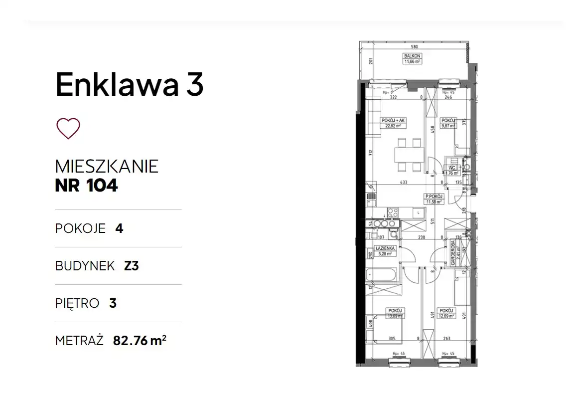 - Charakterystyka mieszkania 82.76 m2, 4 pokoje