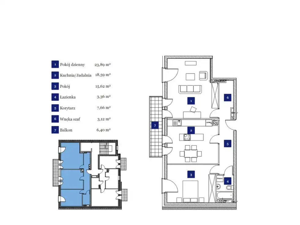 - Charakterystyka mieszkania 72.25 m2, 2 pokoje