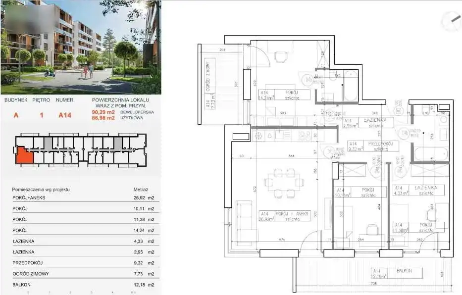 - Charakterystyka mieszkania 86.51 m2, 4 pokoje