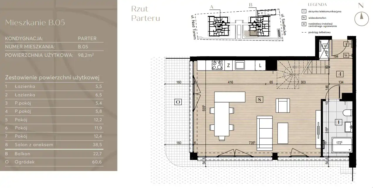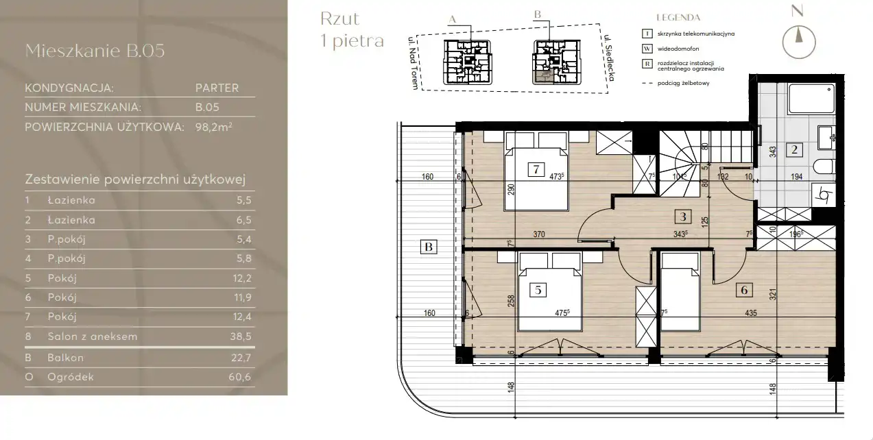 NA SPZREDAŻ / prestiżowe dwupoziomowe mieszkanie o powierzchni 98,2 m2 z dużym balkonem 22,7 m2 oraz ogródkiem 60,6 m2