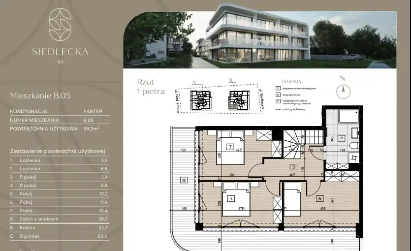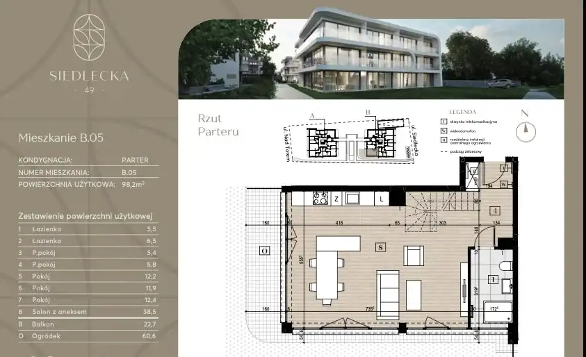 W ramach inwestycji powstaną dwa eleganckie, niskokondygnacyjne budynki, które pomieszczą łącznie 37 komfortowych apartamentów o powierzchniach od 37 m² do 105 m². Mieszkania na parterze będą wyposażone w prywatne ogródki, idealne do relaksu na świeżym powietrzu, natomiast lokale na piętrach zyskają przestronne tarasy z nowoczesnymi szklanymi balustradami.