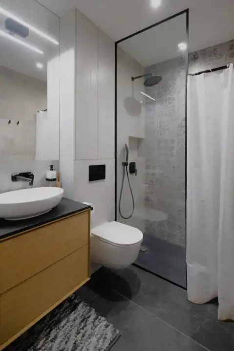*mniejsza z przestronnym prysznicem typu walk-in,