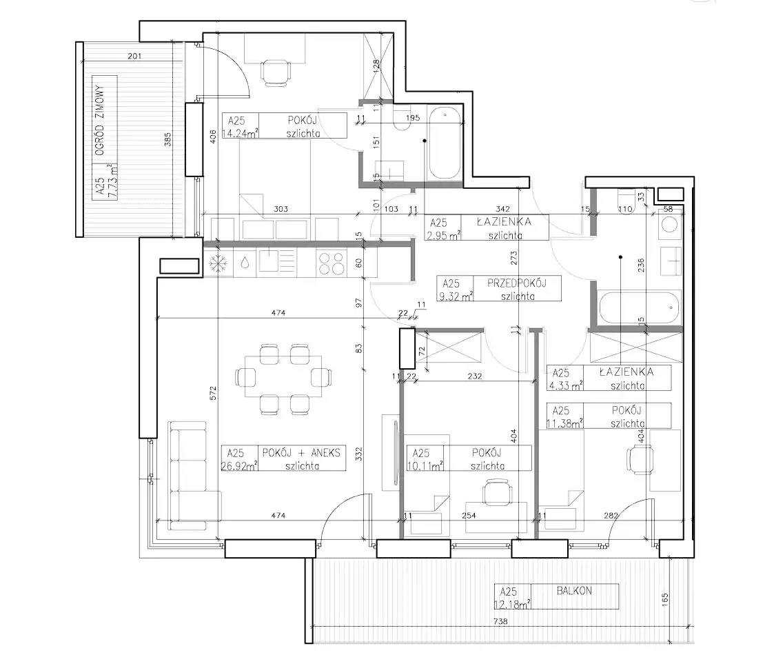 - Charakterystyka mieszkania 85.44 m2, 4 pokoje