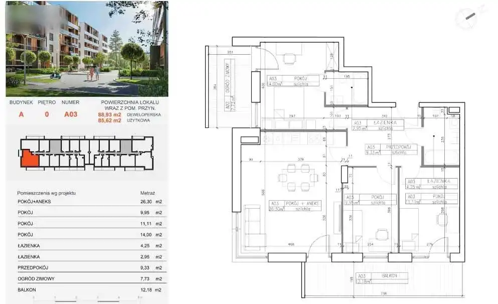 - Charakterystyka mieszkania 85.44 m2, 4 pokoje