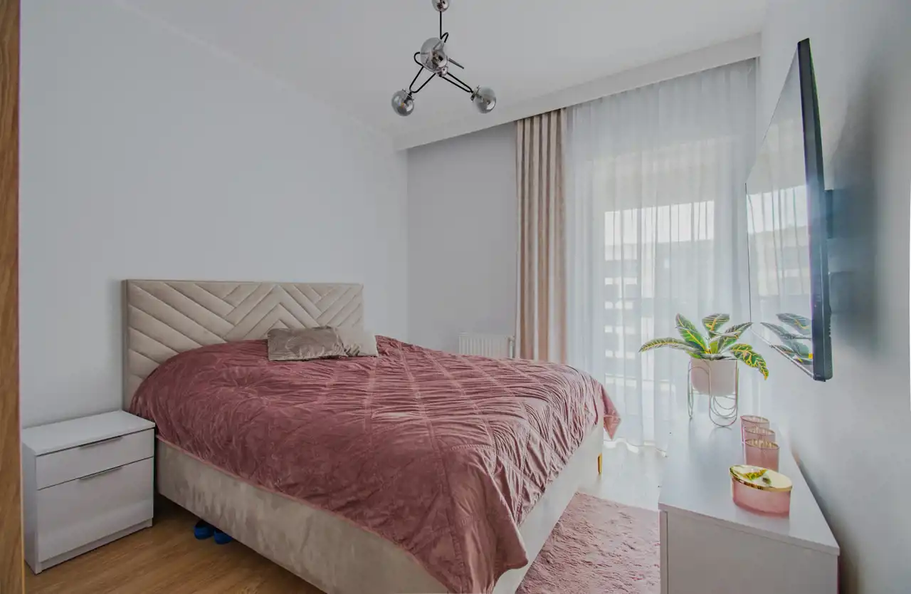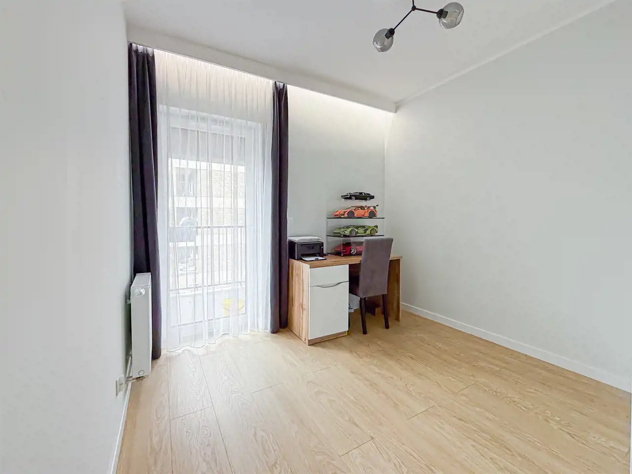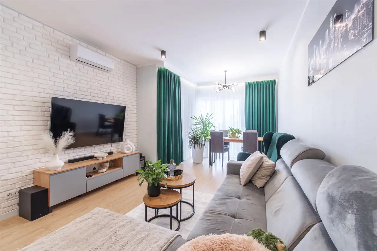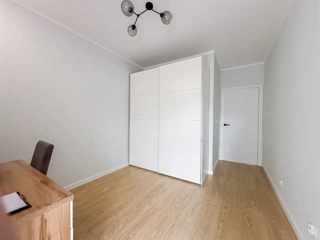 W mieszkaniu znajdują się rolety zewnętrzne i klimatyzacja sterowane z aplikacji, oraz w kuchni i łazience ledy na czujniki ruchu.