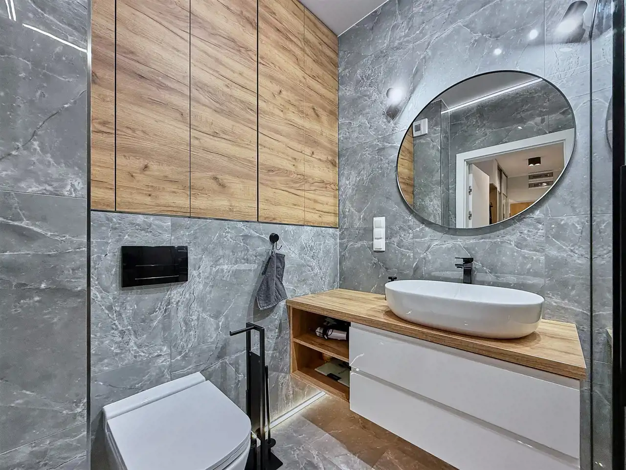 Ściany: gładzie, farba, glazura, kamień sztuczny;