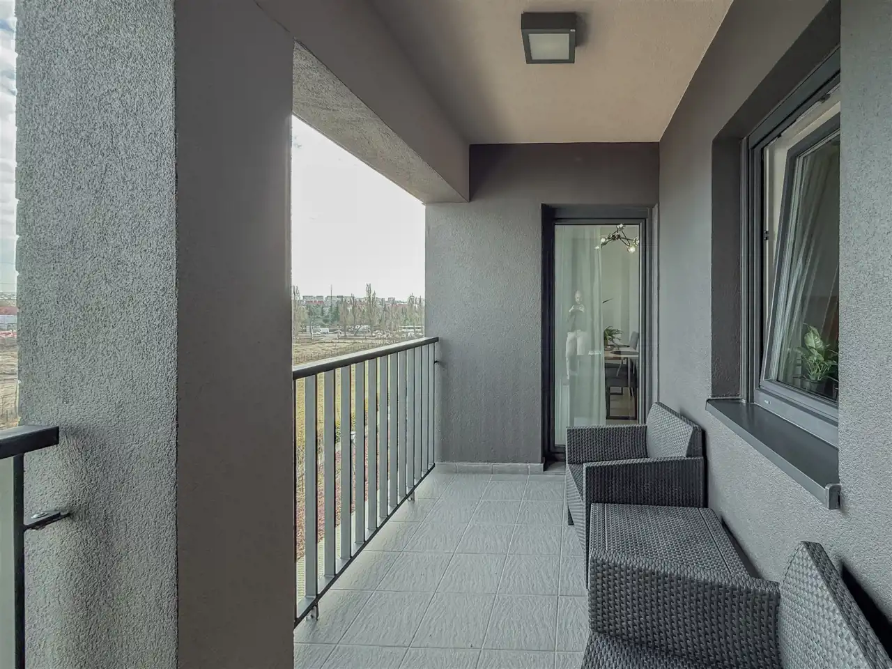 Posiada dwa tarasy: z salonu wyjście na taras 6 m2 a z obu sypialni wyjście na taras 10 m2.
