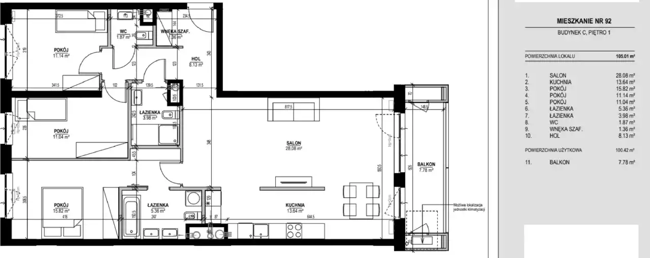 - Charakterystyka mieszkania 105 m2, 4 pokoje