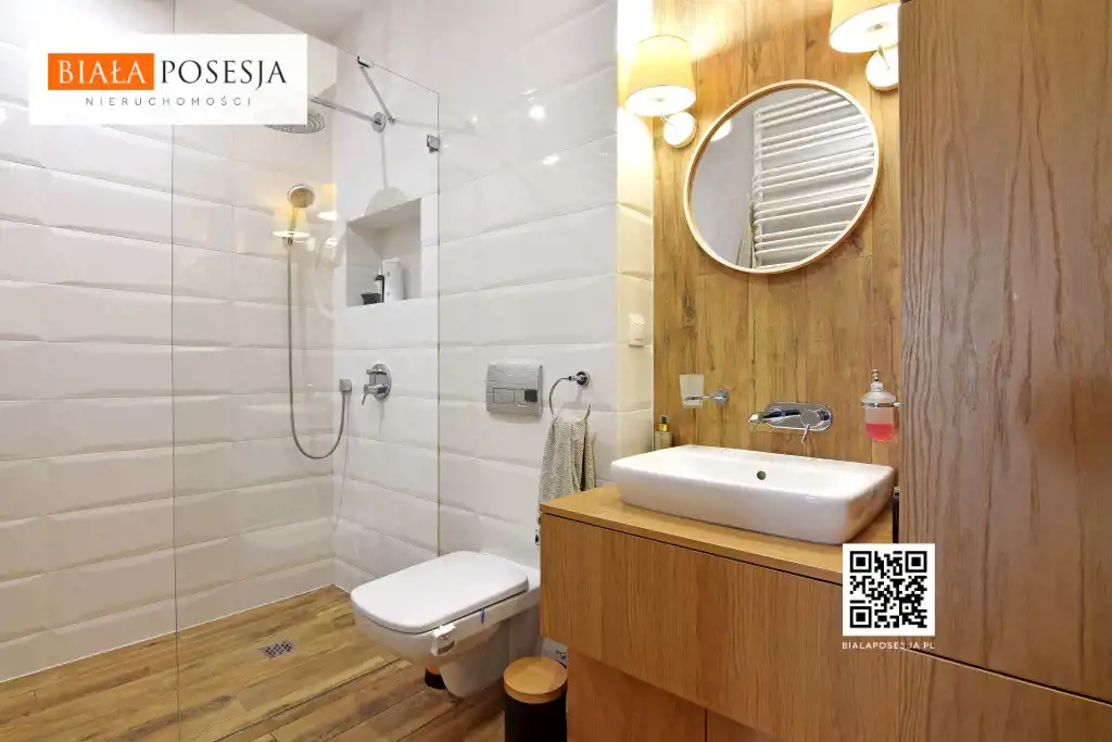 - funkcjonalna łazienka z prysznicem, posiada ogrzewanie podłogowe (5,44 m²);