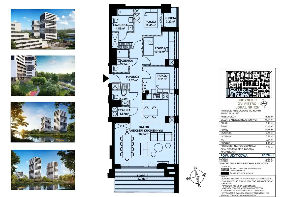 - Charakterystyka mieszkania 95.26 m2, 3 pokoje