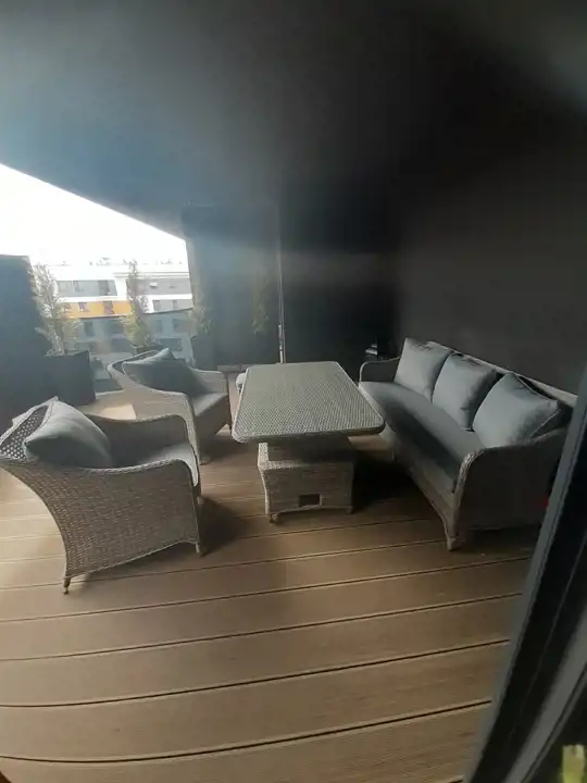Powierzchnia mieszkaniowa to 80m2 plus około 60m2 dwa duże tarasy.