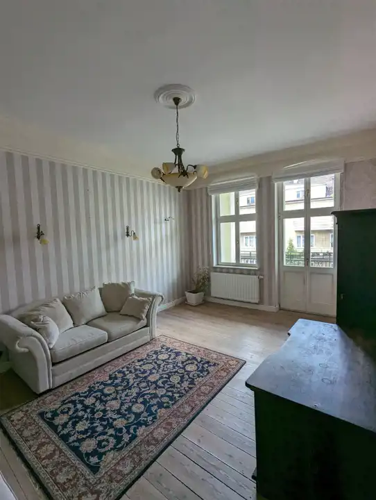 Całość zachowana w stylu pasującym do secesyjnej kamienicy. Wycyklinowane podłogi, drewniane nowe okna, oryginalna stolarka drzwiowa oraz unikatowe piece kaflowe!