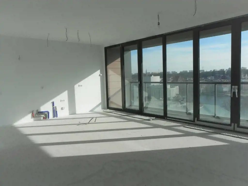 + ORAZ WYJŚCIE NA LOGGIĘ Z SALONU o pow. 10m2. - widok na drugą część Bydgoszczy (przygotowana do wyłożenia deskami).