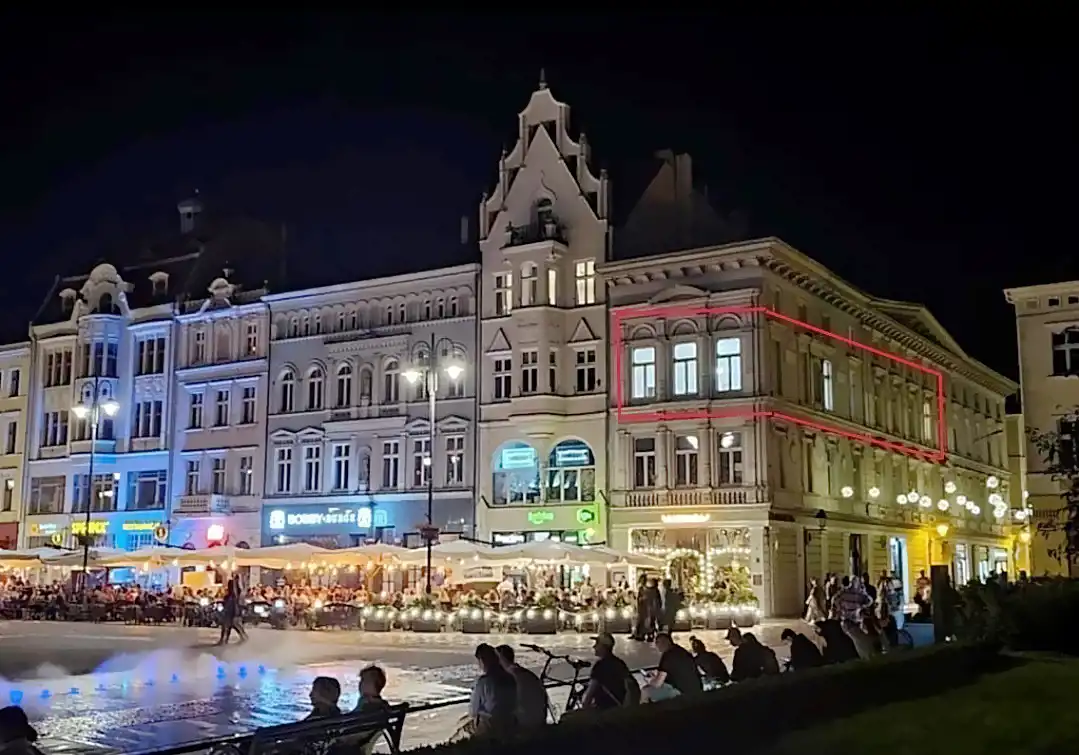 BIURO NIERUCHOMOŚCI GLAM HOUSE gorąco poleca apartament o powierzchni 133 m² usytuowany na II piętrze trzypiętrowej kamienicy przy Starym Rynku w Bydgoszczy z widokiem na plac rynku, kamienic i ratusza.