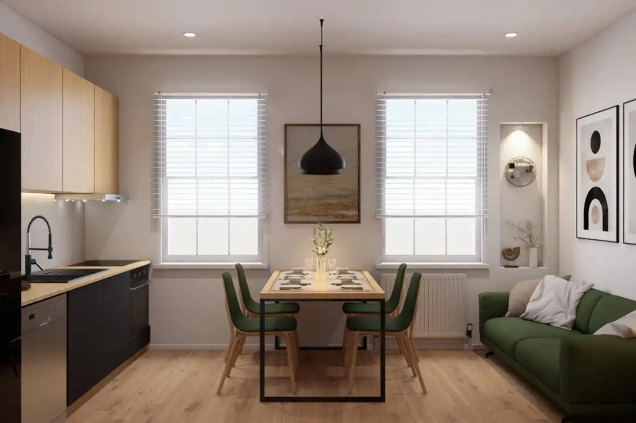 Załączone zdjęcia przedstawiają wizualizacje, ukazujące potencjał przestrzeni po odświeżeniu.