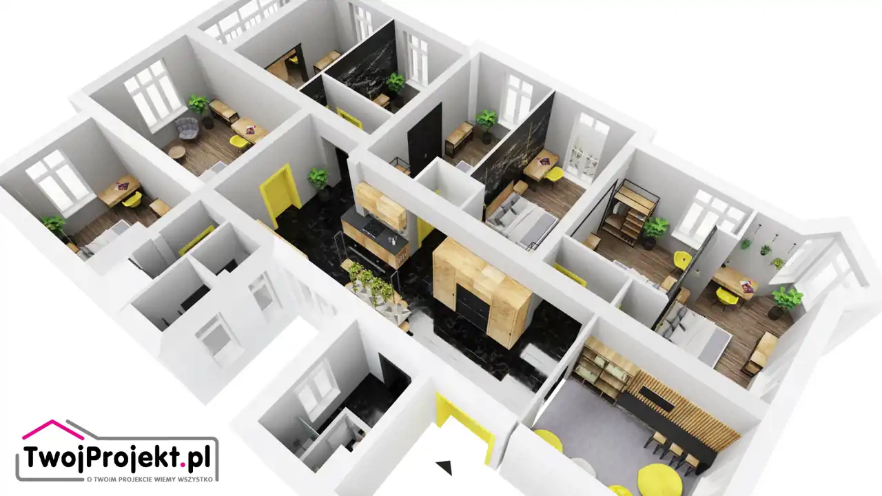 Stworzona została koncepcja stworzenia - do 8 kawalerek, pokoi idealnych pod wynajem.