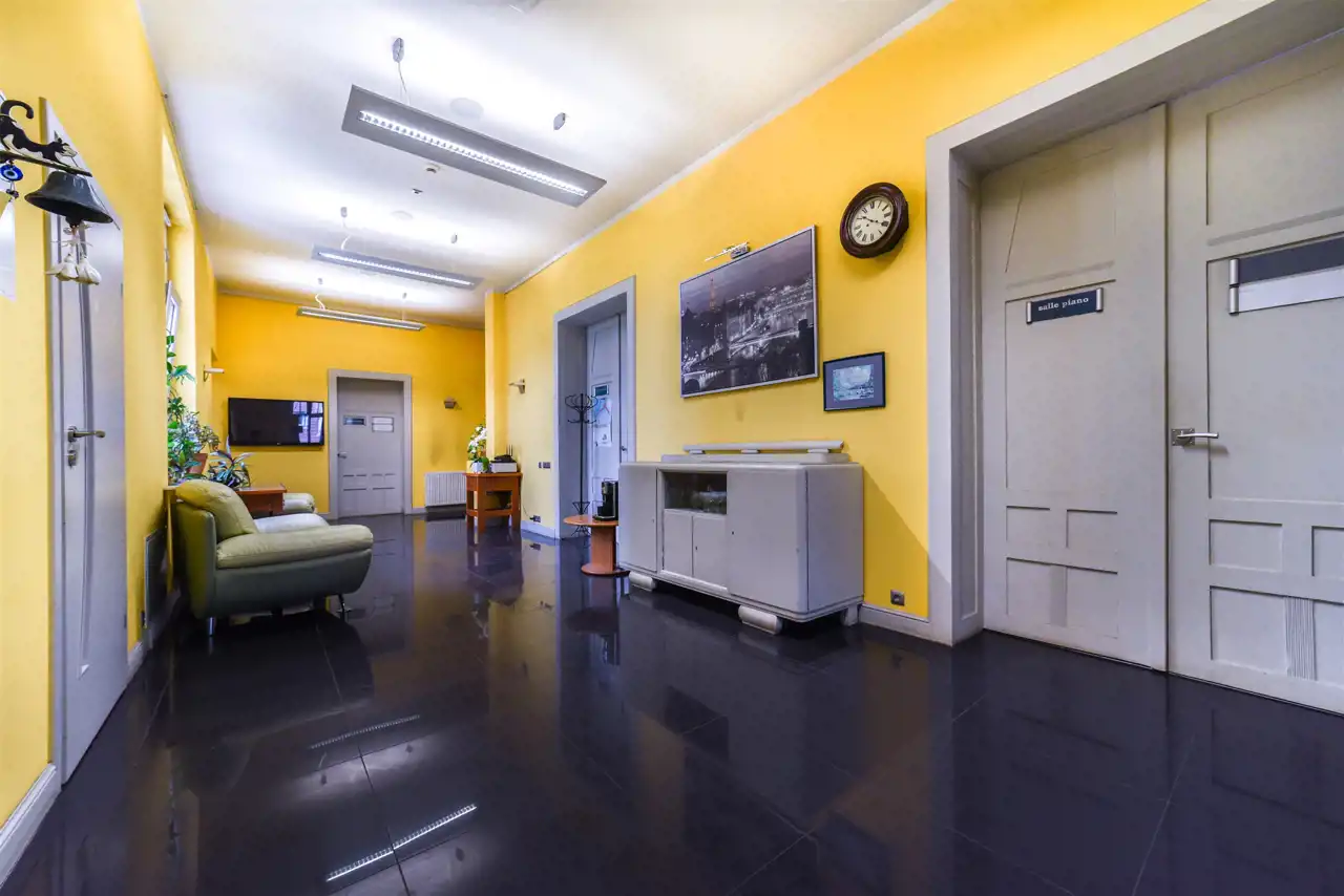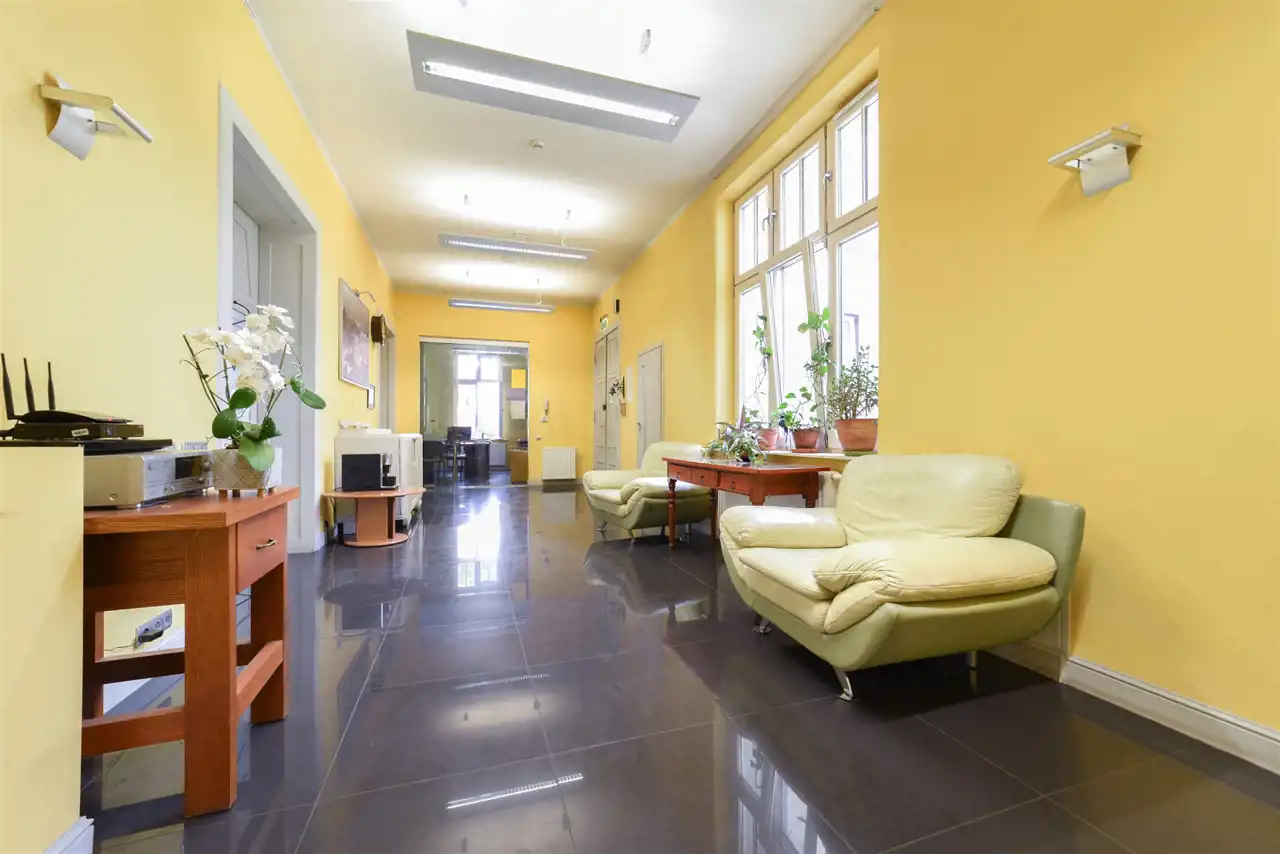 Lokal mieszkalny o powierzchni 204,85 m2 składa się obecnie z 6 pokoi, łazienki, dwóch oddzielnych pomieszczeń sanitarnych, aneksu socjalnego - kuchni, dużego przedpokoju - recepcji.