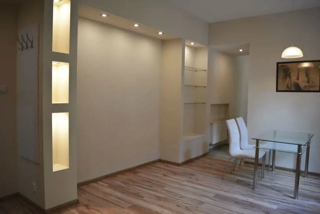 Wymienione zostały wszystkie instalacje wewnętrzne na nowe- elektryczna, gazowa i wodno-kanalizacyjna. Mieszkanie ogrzewane jest ekonomicznym piecem dwufunkcyjnym z nową instalacją CO i grzejnikami. Nowe okna i parapety pcv., drzwi wejściowe antywłamaniowe, wewnętrzne białe ramowe przeszklone. Nowoczesne wykończenie wnętrz ze ściankami, zabudowy, ozdobne wnęki i podwieszane sufity w systemie Gkf z oświetleniem led.