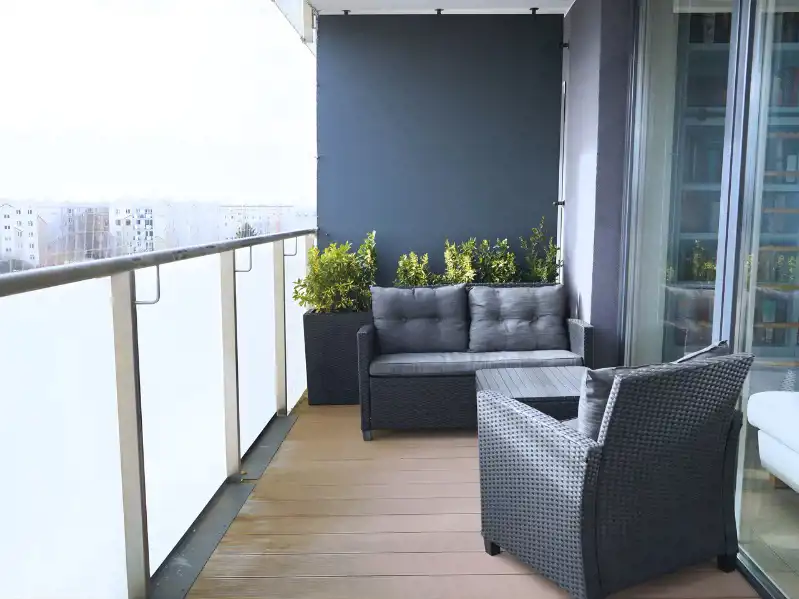 Dwa balkony pozwalają cieszyć się przestrzenią na świeżym powietrzu – idealne miejsce na poranną kawę lub wieczorny odpoczynek. Taras większy, z ekspozycją północno-zachodnią oraz możliwością wejścia z każdego z pokoi. Mniejszy zaś, z wejściem z salonu i ekspozycją południowo-wschodnią, skąd podziwiać można malownicze wschody słońca.