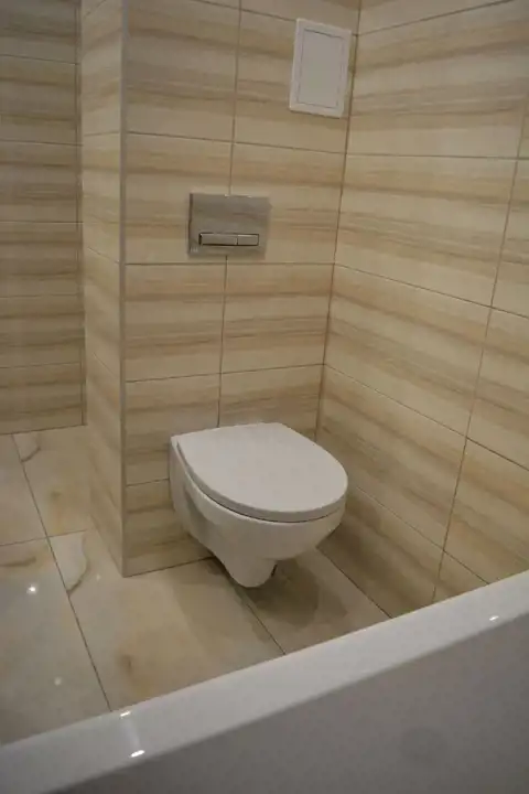 Na podłogach w pokojach panele o IV klasie ścieralności, podłoga przedpokoju glazura gres. Ściany wykończone w gładzi, pomalowane farbą lateksową, zmywalną, sufity akrylową. Łazienka z WC, na podłodze i ścianach gres-Paradyż, wyposażenie – wanna duża 170x70, duża umywalka z szafką i wiszący kompakt wc, miejsce na pralkę.