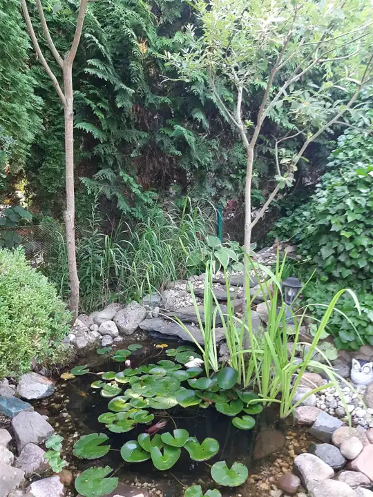 Przed wejściem do budynku jest zaaranżowane urocze miejsce, pełne kwiatów z oczkiem wodnym dla każdego mieszkańca. Można wypić kawę , poczytać ciekawą książkę , a nawet posłuchać śpiewu ptaków.