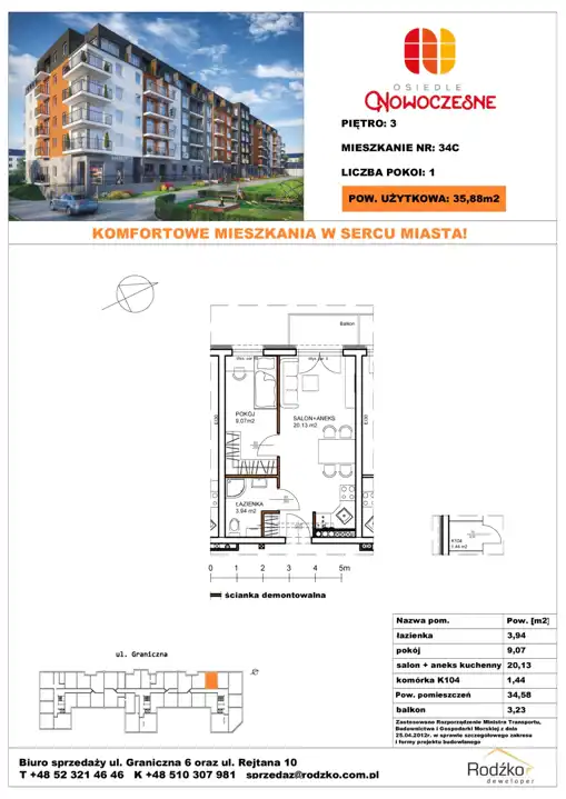 - Charakterystyka mieszkania 35.88 m2, 2 pokoje