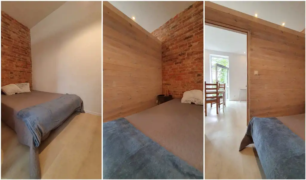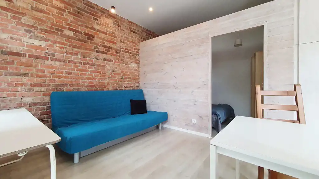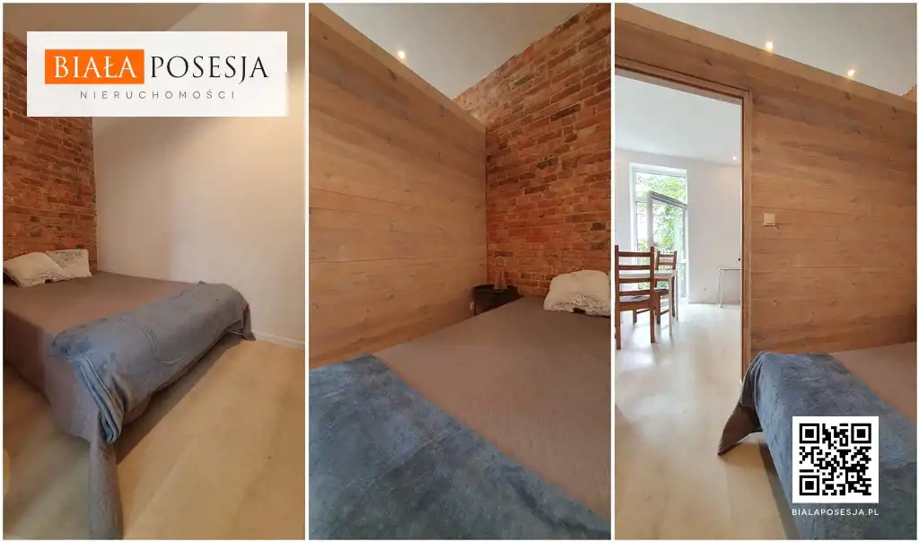 Na jednej ze ścian zachowano oryginalną cegłę która nadaje charakter i klimat mieszkaniu.