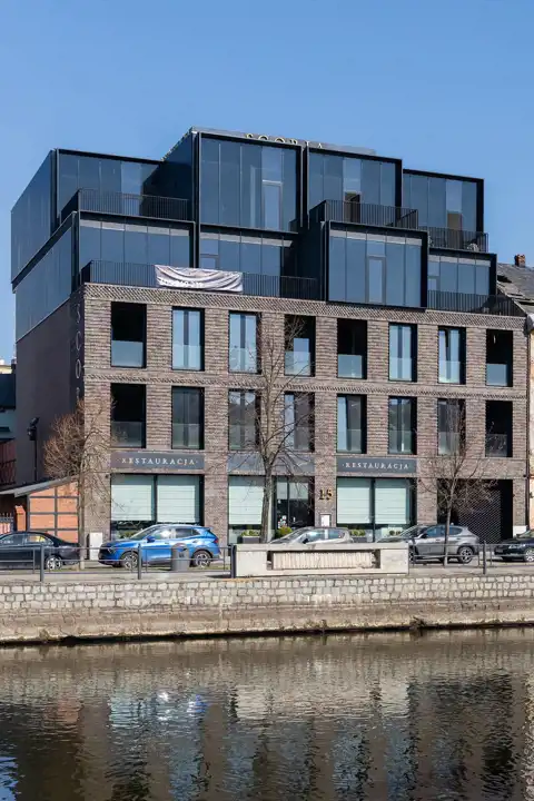 Projekt, zrealizowany przez renomowaną pracownię architektoniczną, harmonijnie wpisuje się w zabytkową tkankę miasta, jednocześnie wprowadzając nowoczesne rozwiązania architektoniczne. Budynek składa się z 5 kondygnacji nadziemnych, oferując przestronne mieszkania z panoramicznymi widokami na rzekę Brdę i Stare Miasto.