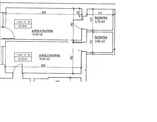 Istnieje możliwość uzyskania dwóch niezależnych kawalerek, składających się z pokoju z aneksem kuchennym oraz łazienki.