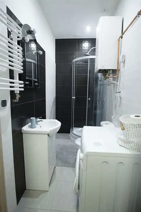 Mieszkanie jest kompletnie wyposażone, w kuchni płyta elektryczna oraz lodówka. Ogrzewanie gazowe - piec dwufunkcyjny.