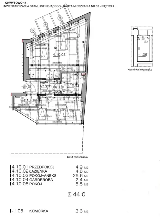 - Charakterystyka mieszkania 44 m2, 2 pokoje