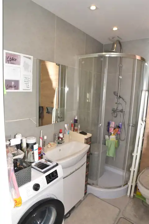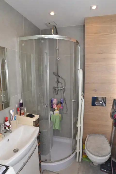 Łazienka z wc - 2,7 m2 - podłoga i ściany płytki, kabina prysznicowa