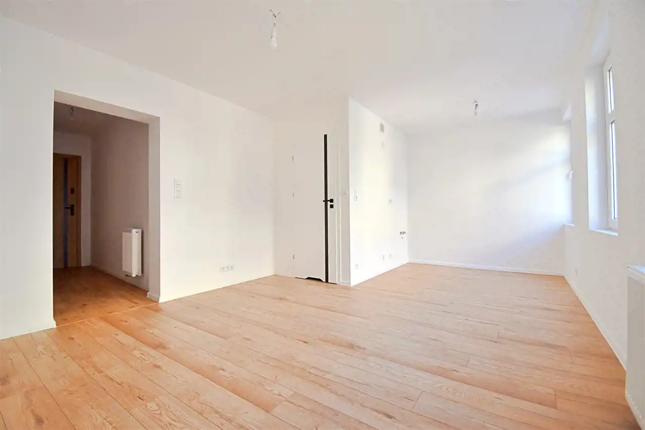 Jasna, ustawna kawalerka w trzypiętrowej wyremontowanej kamienicy na pierwszym piętrze. Mieszkanie posiada 1 ustawny pokój z aneksem kuchennym, łazienkę razem z WC, przedpokój.