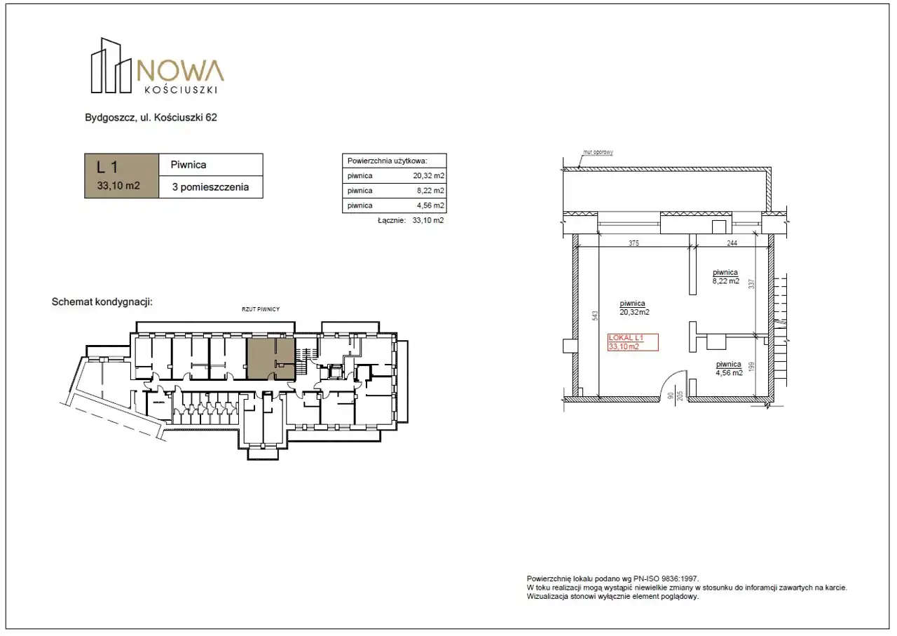 Lokal pod gabinet / mieszkanie o powierzchni 33 m2 składa się z:
