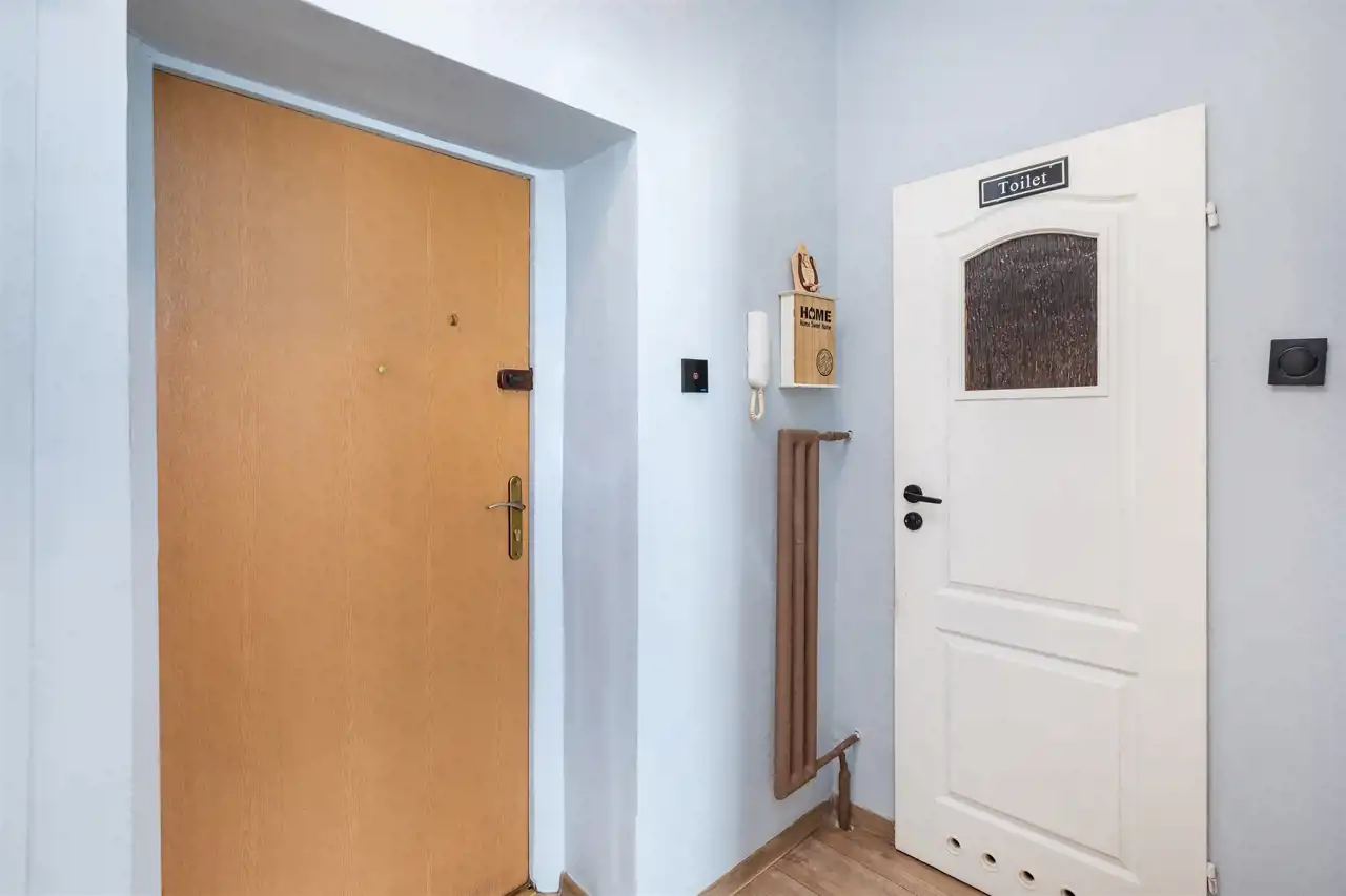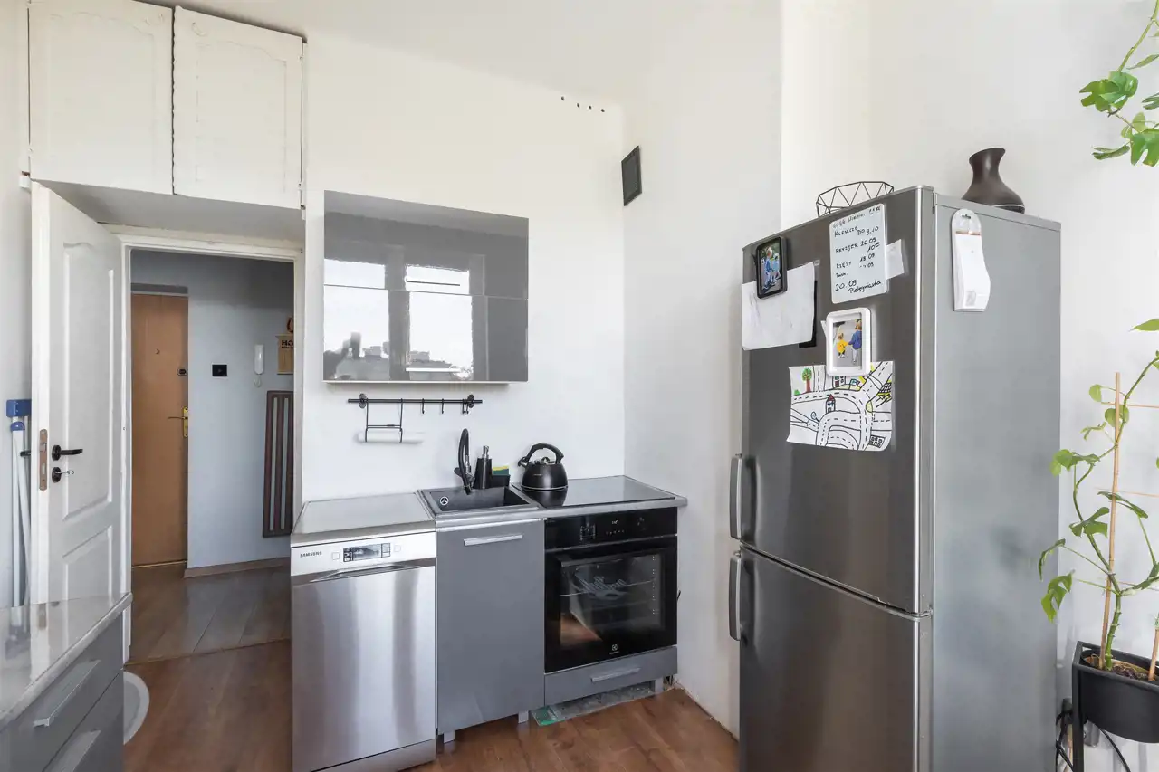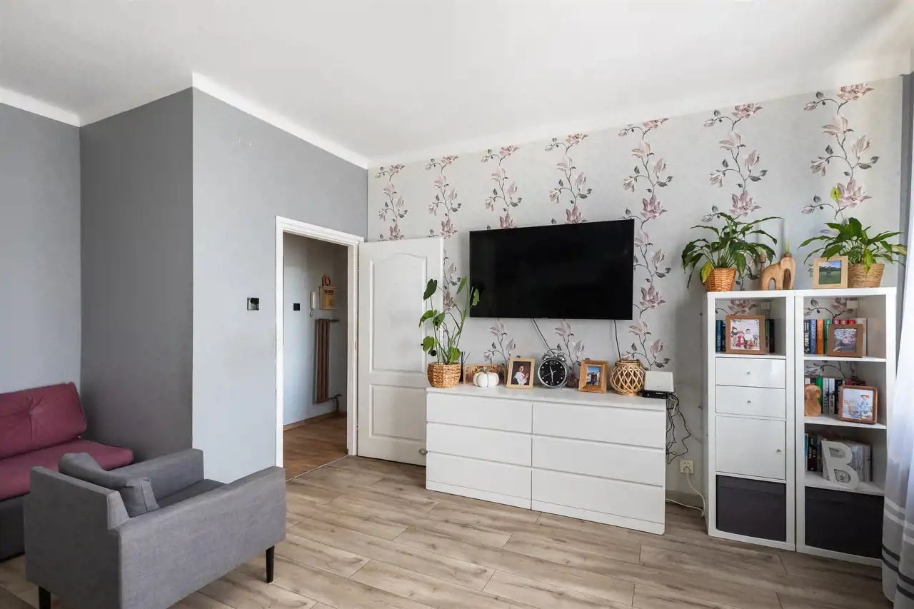 W pokoju i kuchni na podłodze panele podłogowe, ściany i sufity gipsowane. Łazienka razem z wc. Dobry układ funkcjonalny mieszkania. Istnieje możliwość przekształcenia mieszkania w M-3 (salon z aneksem kuchennym i sypialnia).