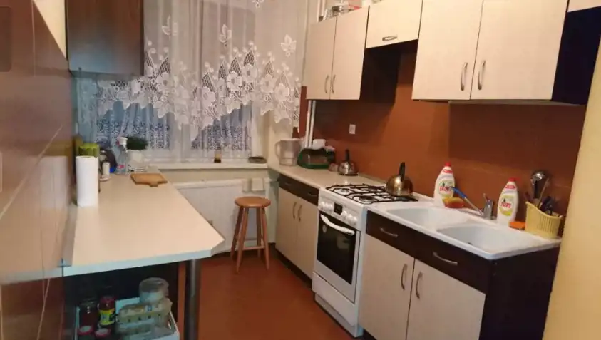 Mieszkanie własnościowe, wspólnota mieszkaniowa. Przedpokój, salon, mały pokój, łazienka, toaleta, kuchnia, balkon. Parter w spokojnej okolicy. Zawiera piwnicę.