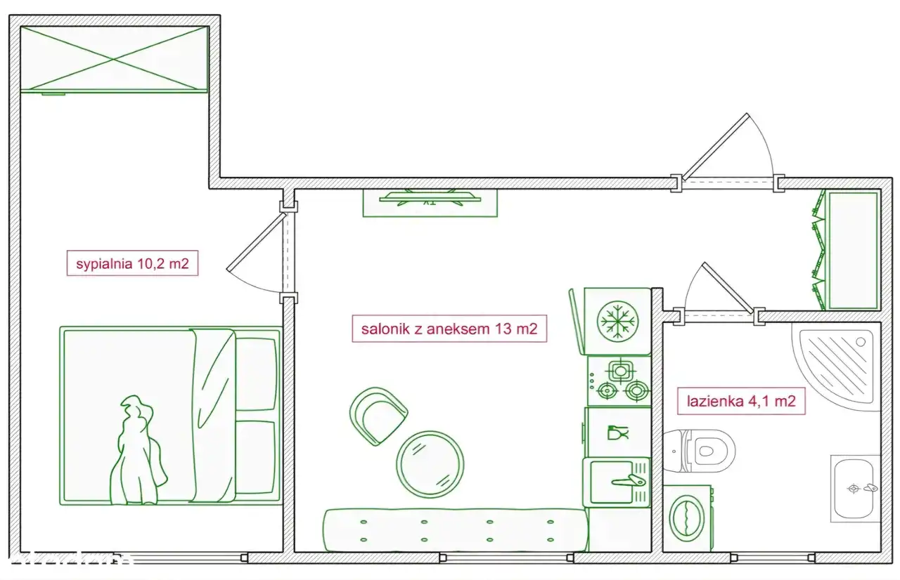 - Charakterystyka mieszkania 26.5 m2, 2 pokoje
