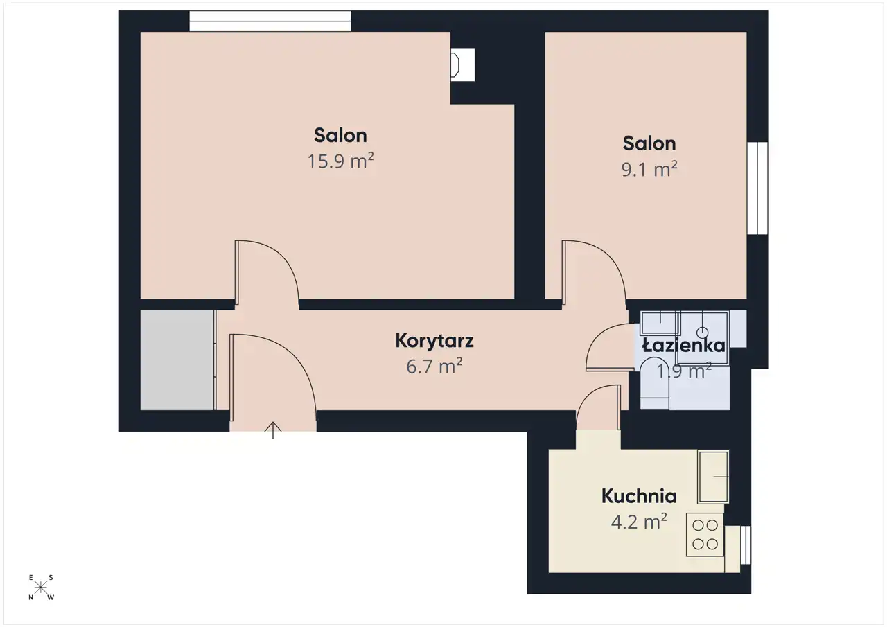 - Charakterystyka mieszkania 40.28 m2, 2 pokoje