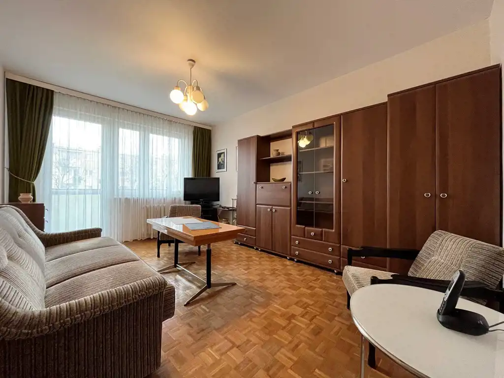 - salon 15 m2 z wyjściem na balkon typu koszyk,