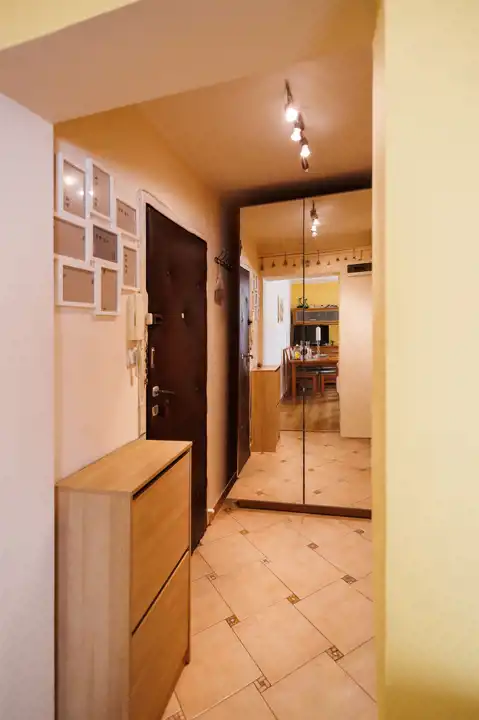 - Przedpokój: Z pojemną szafą typu Komandor – pomieścisz tu wszystko, od płaszczy po deskę do prasowania.